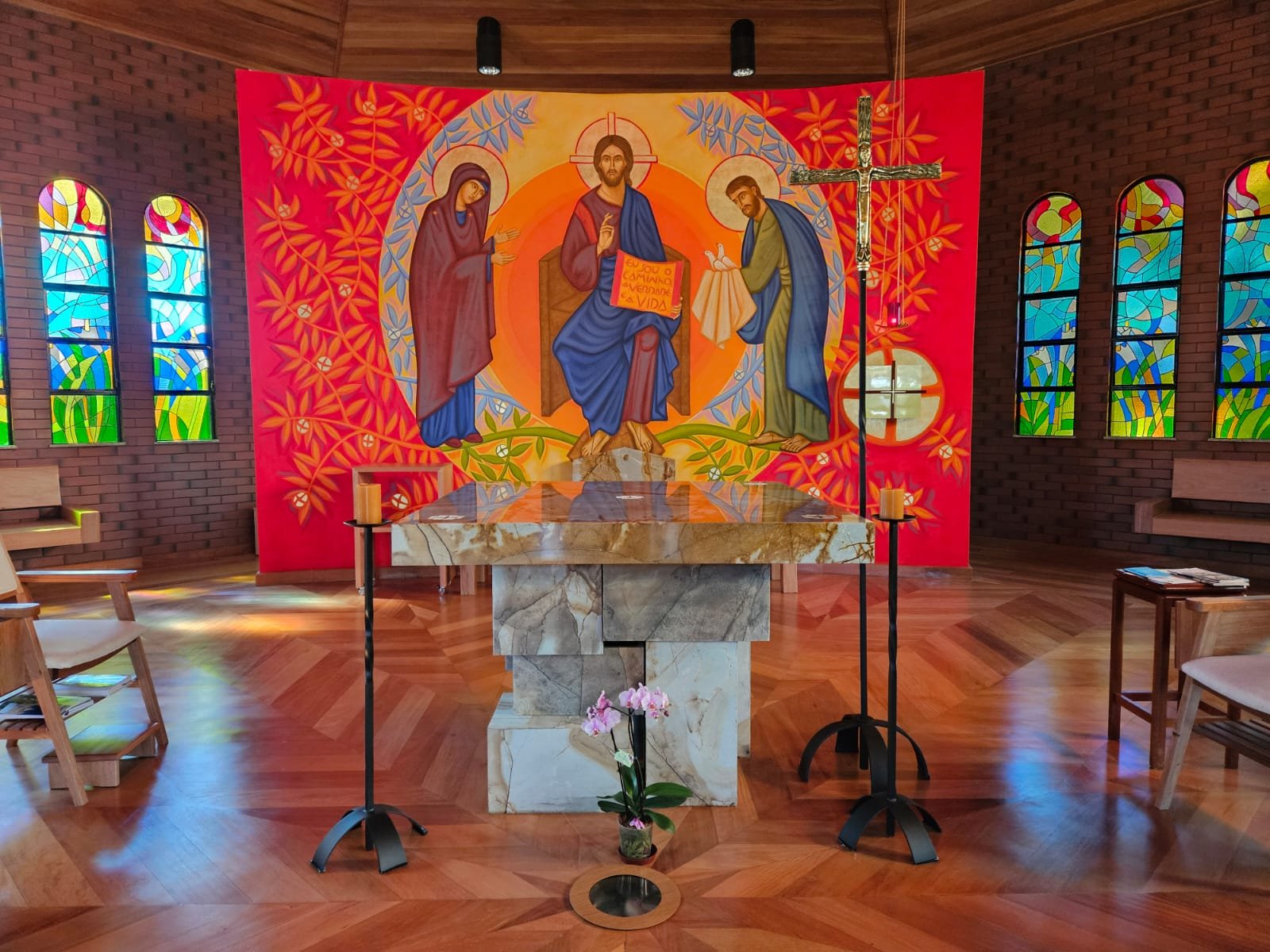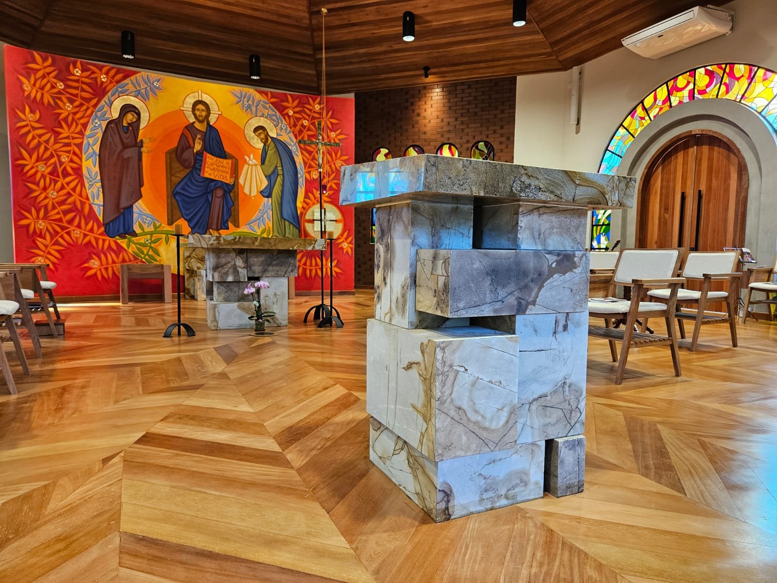 Projetada pela arquiteta Márcia Morizono, com complementos sacros do artista litúrgico Romulo Picoli Ronchetti e acompanhamento litúrgico de Robson Gabriel.