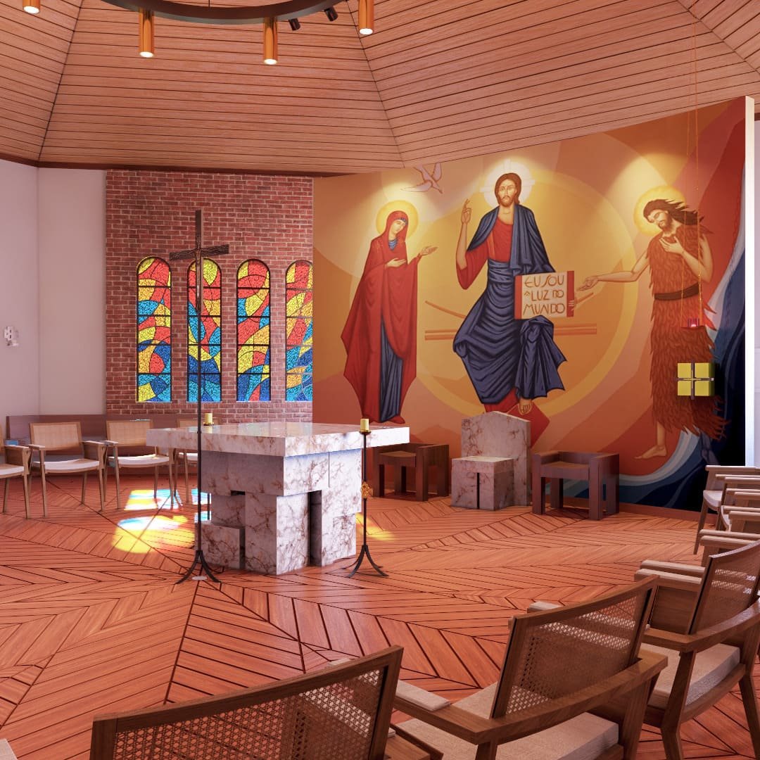 Nesta arquitetura realizada pela arquiteta Márcia Morizono, realizamos algumas pequenas intervenções e projeto litúrgico.